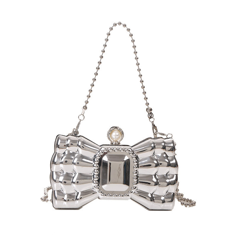 Affichez votre style avec le sac à main Loopily™ avec chaîne et nœud en acrylique, un mélange parfait d'élégance et de style. Doté d'un corps en acrylique brillant, d'un nœud délicat et d'une anse en chaîne épaisse, ce mini sac à main ajoute une touche glamour instantanée à vos tenues de soirée, fêtes ou sorties tendance.