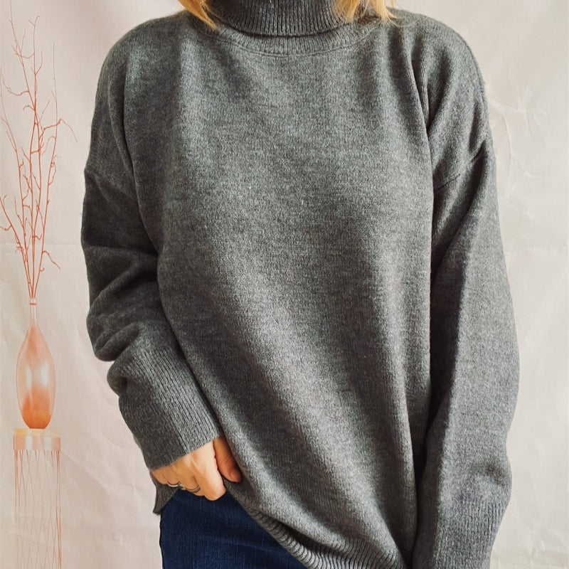 Top Solid Color Turtleneck Long Sleeve Sweaters Pullover Women